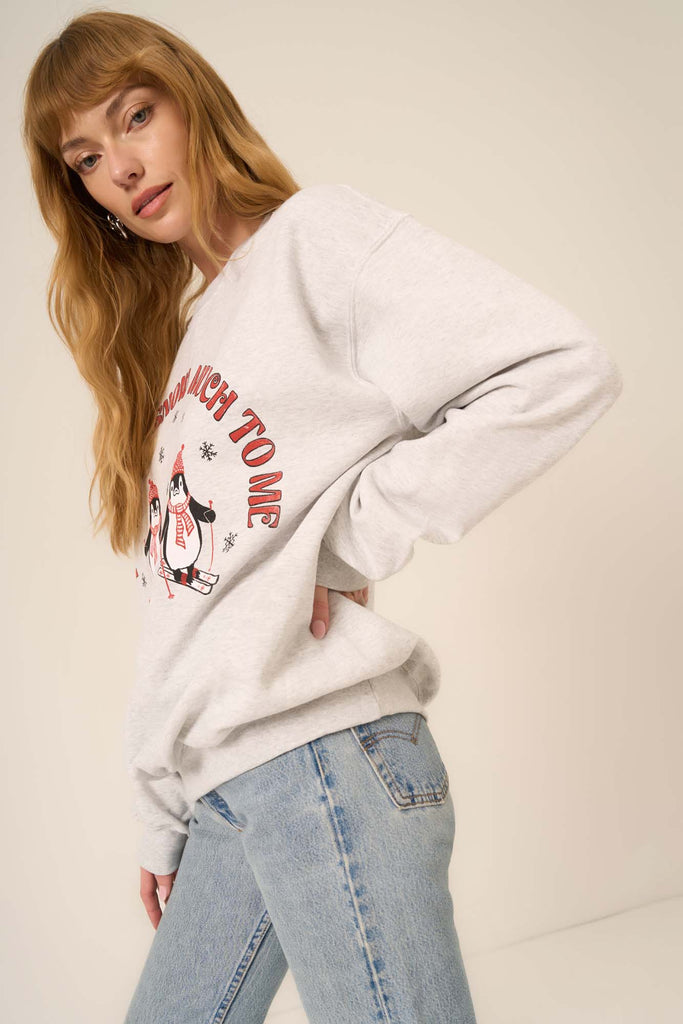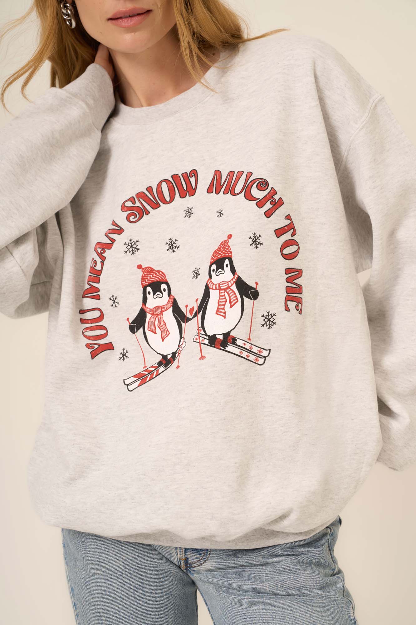 Made from our soft fleece fabric, the Snow Much To Me Sweatshirt features a classic crew neckline, drop shoulders, and a fun winter graphic. The bright wintry colorway against the neutral fabric makes it pop. Brighten up any winter outfit with this cozy statement piece.