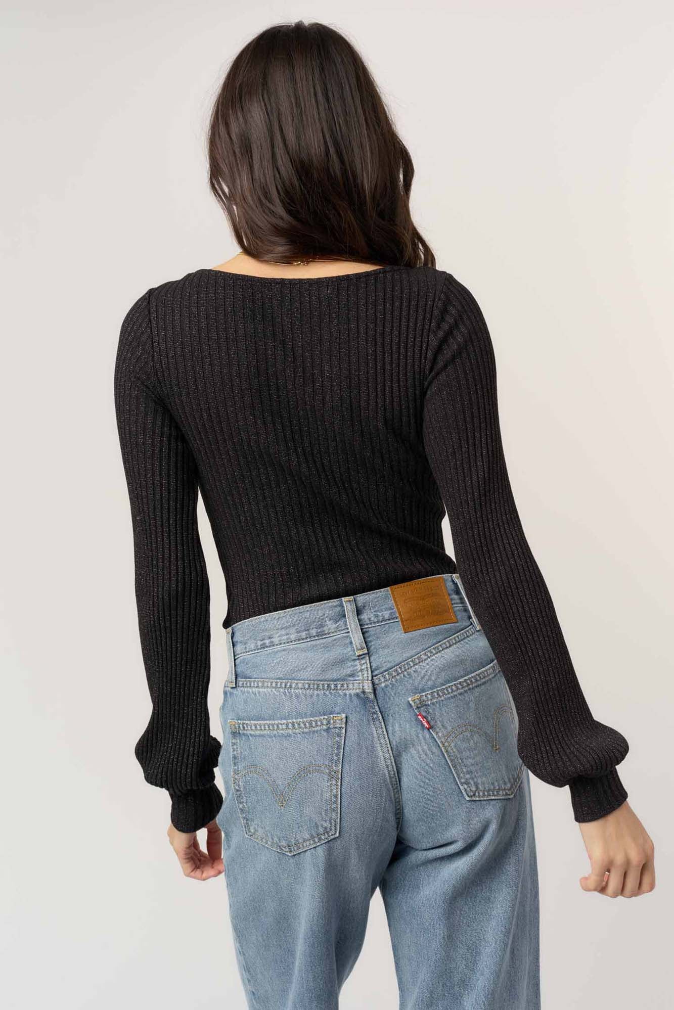 Mood For Love Twist Front Lurex Rib Longsleeve - Black