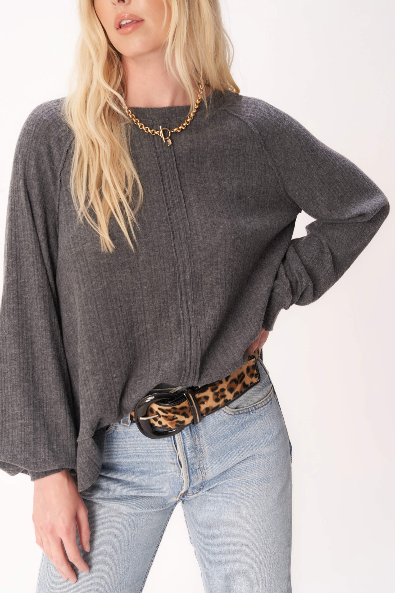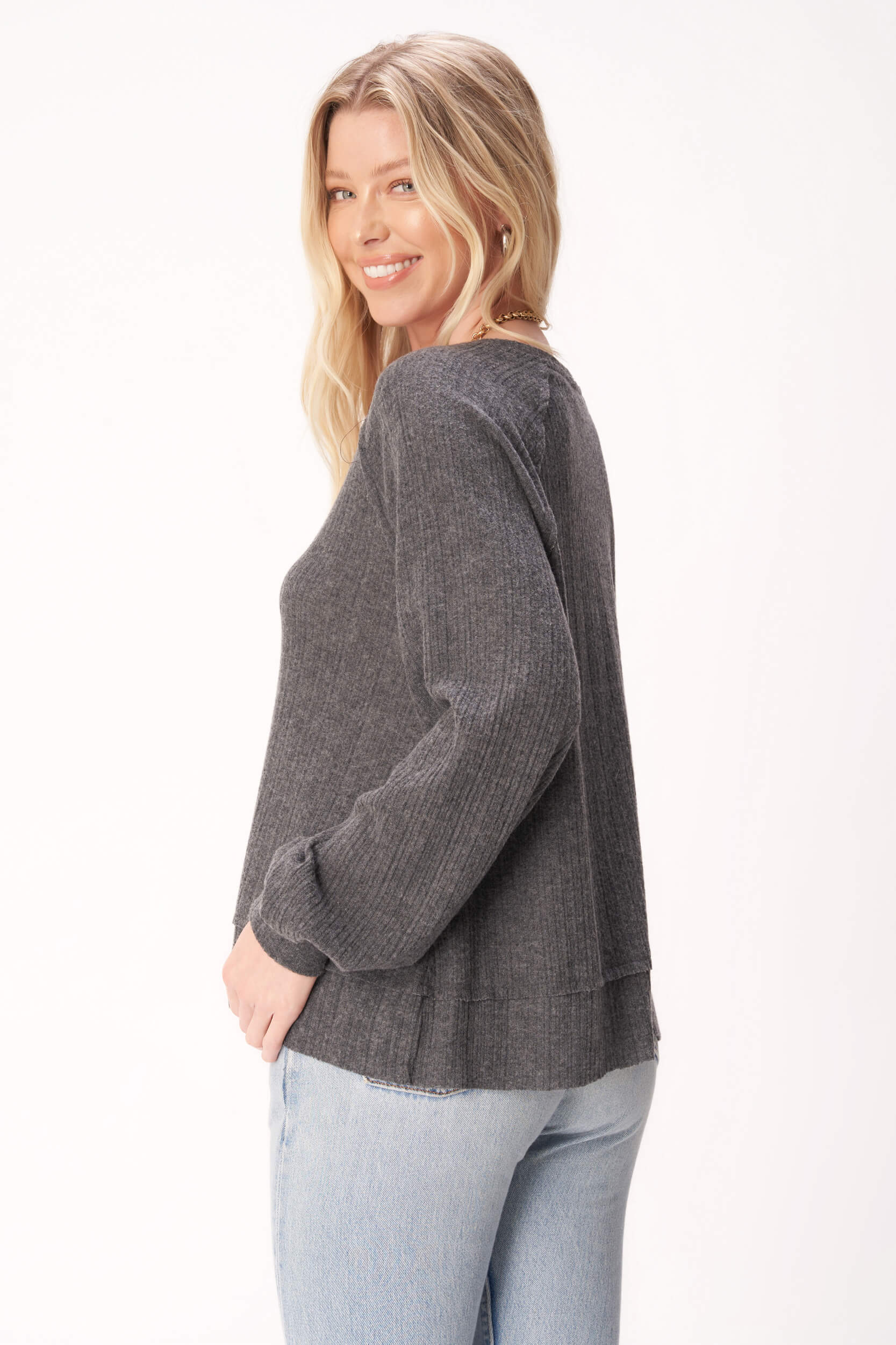 For Real Cozy Seamed Long Sleeve - Charcoal