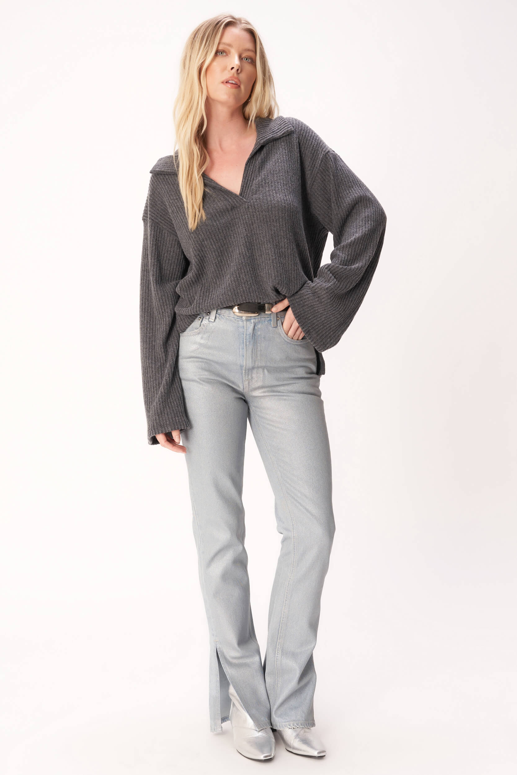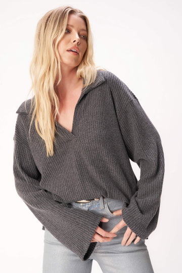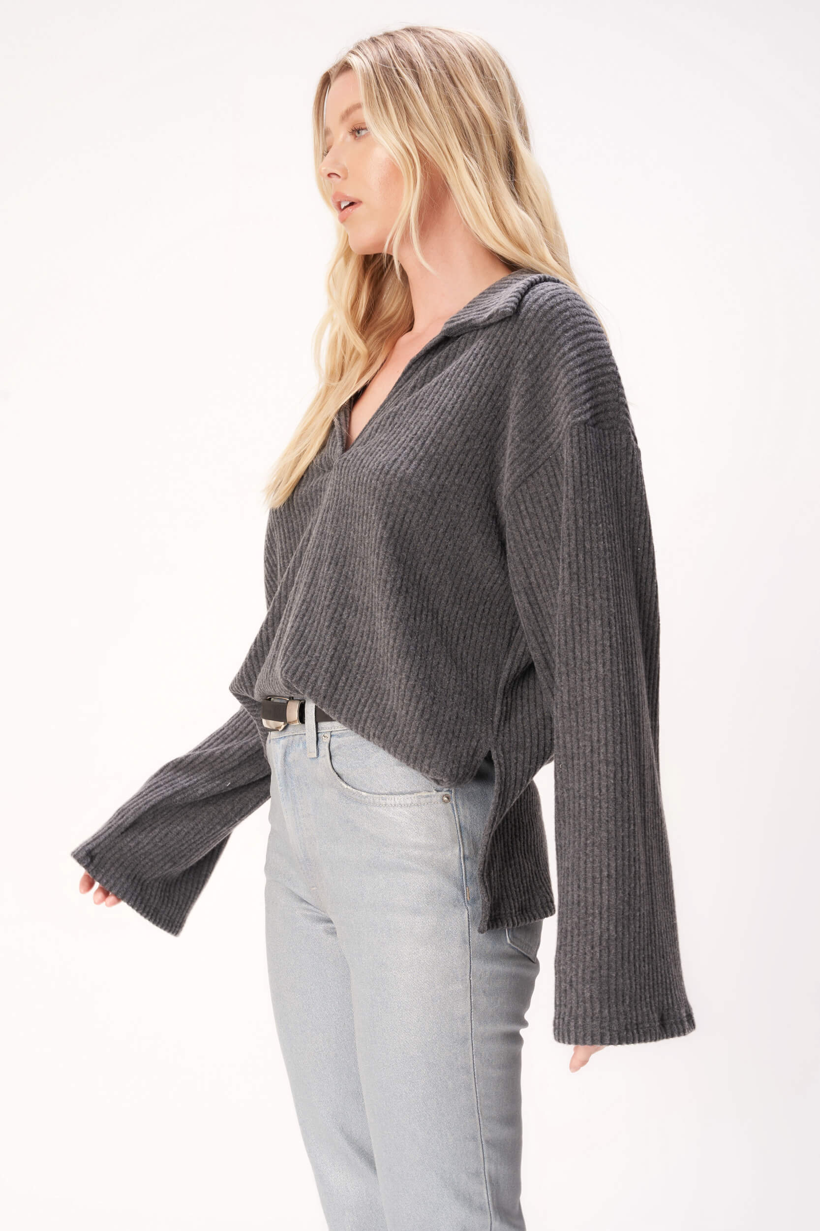 Raven Collared Cozy Rib Long Sleeve - Charcoal
