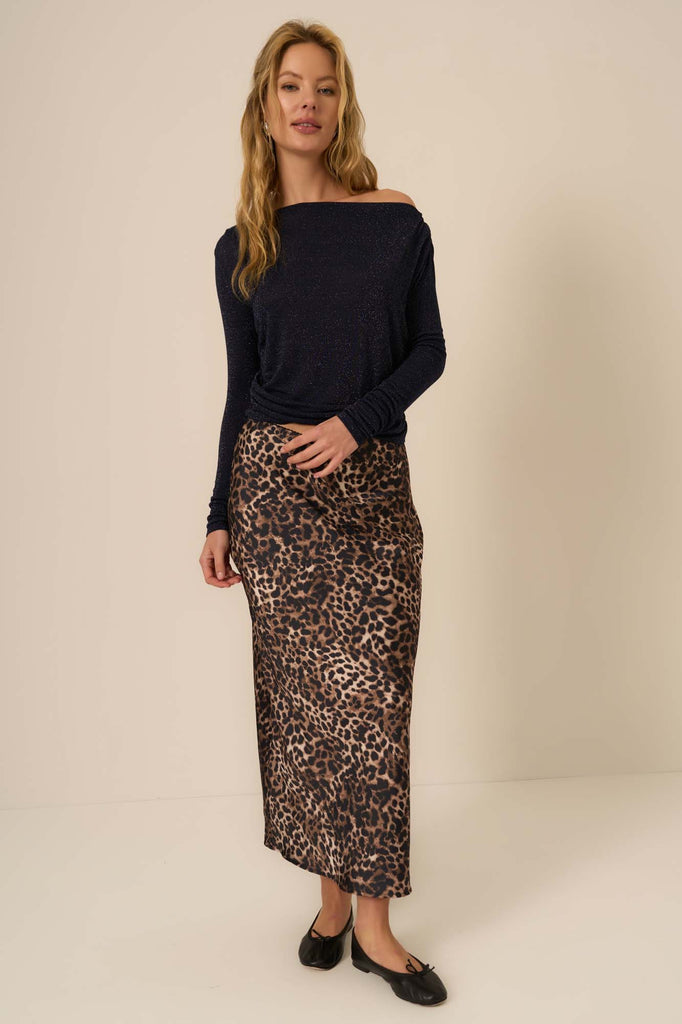 Feeling It Off Shoulder Lurex Long Sleeve - Dark Night