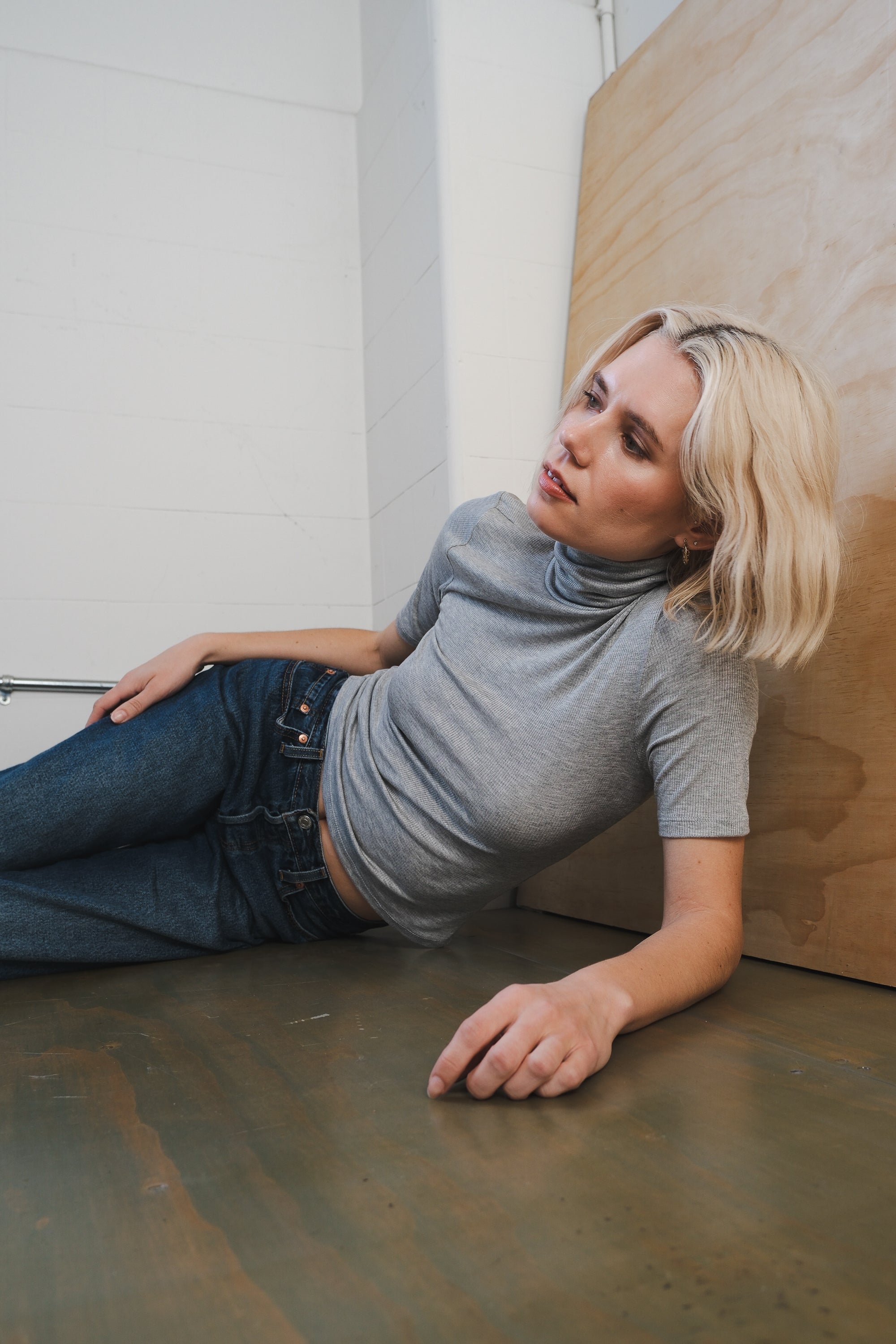 Jesllyn Turtleneck Rib Tee - Heather Grey