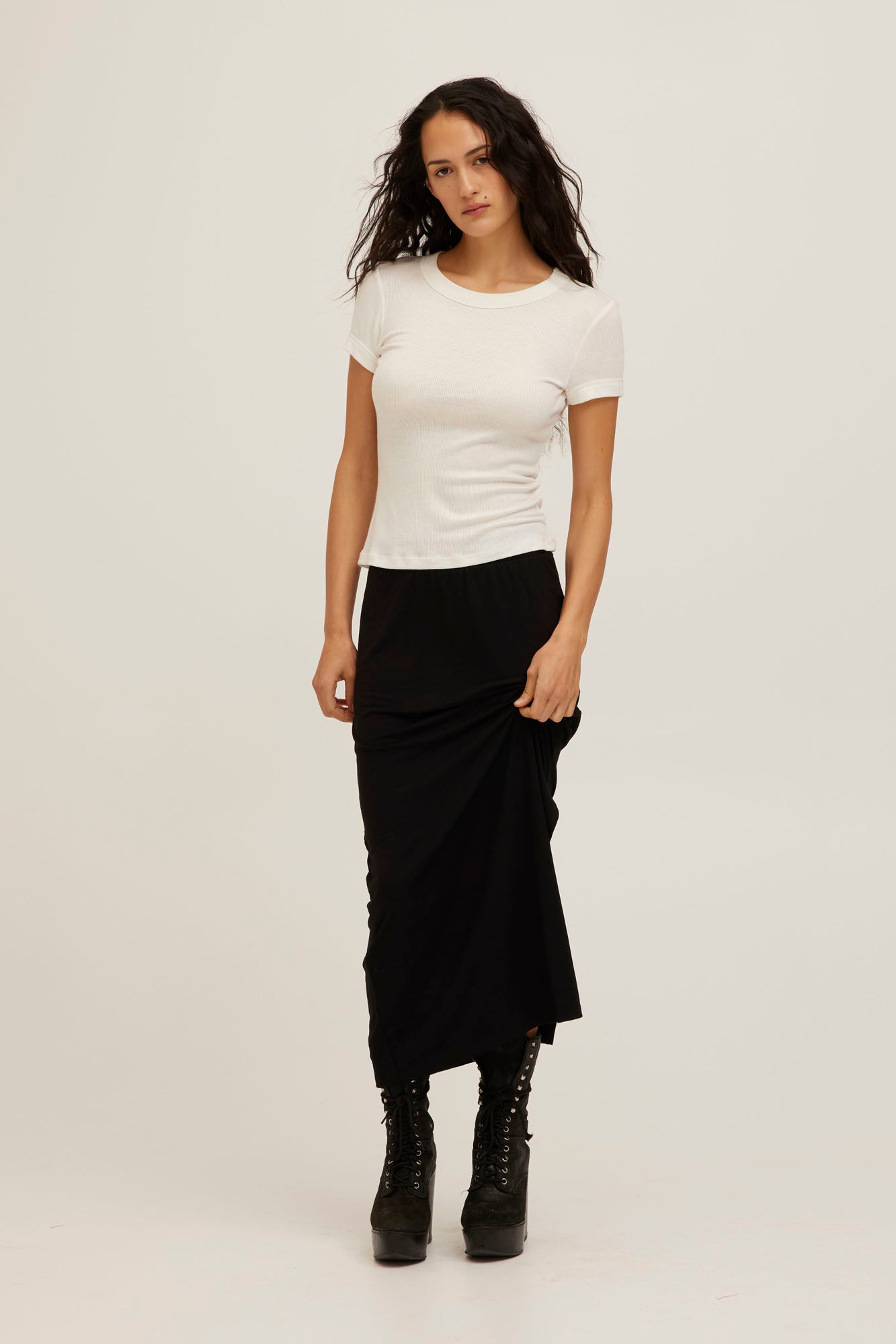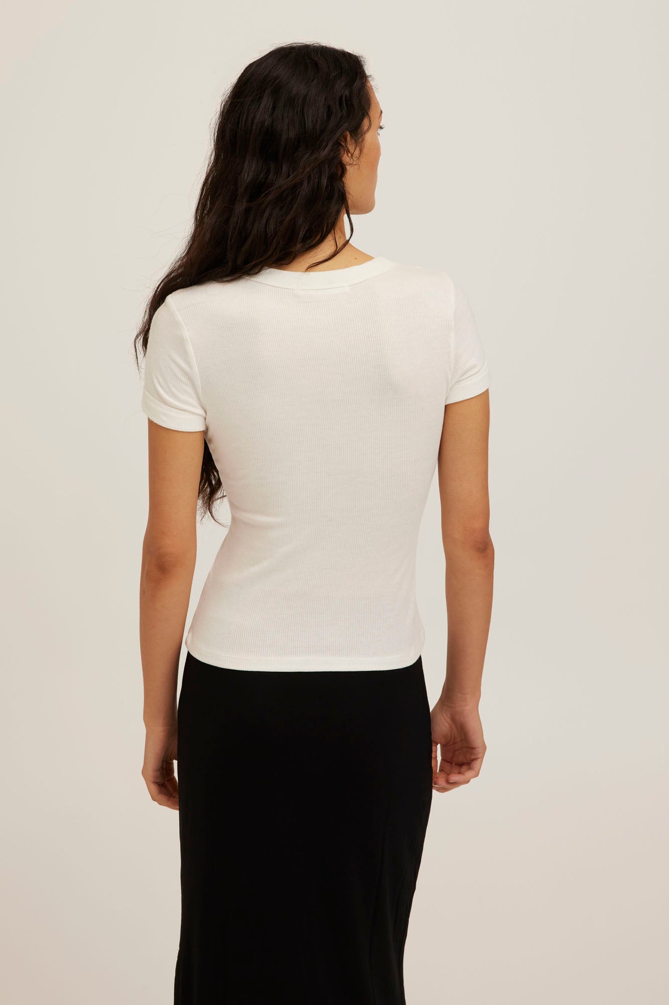 The effortless, everyday classic. Made from an ultra-soft rib with a lightweight, comfortable feel. The Kota is designed with a classic crew neckline and waist-length cut. It has a slim fit that sits smoothly and close to the body. A modern baby tee built for constant wear.