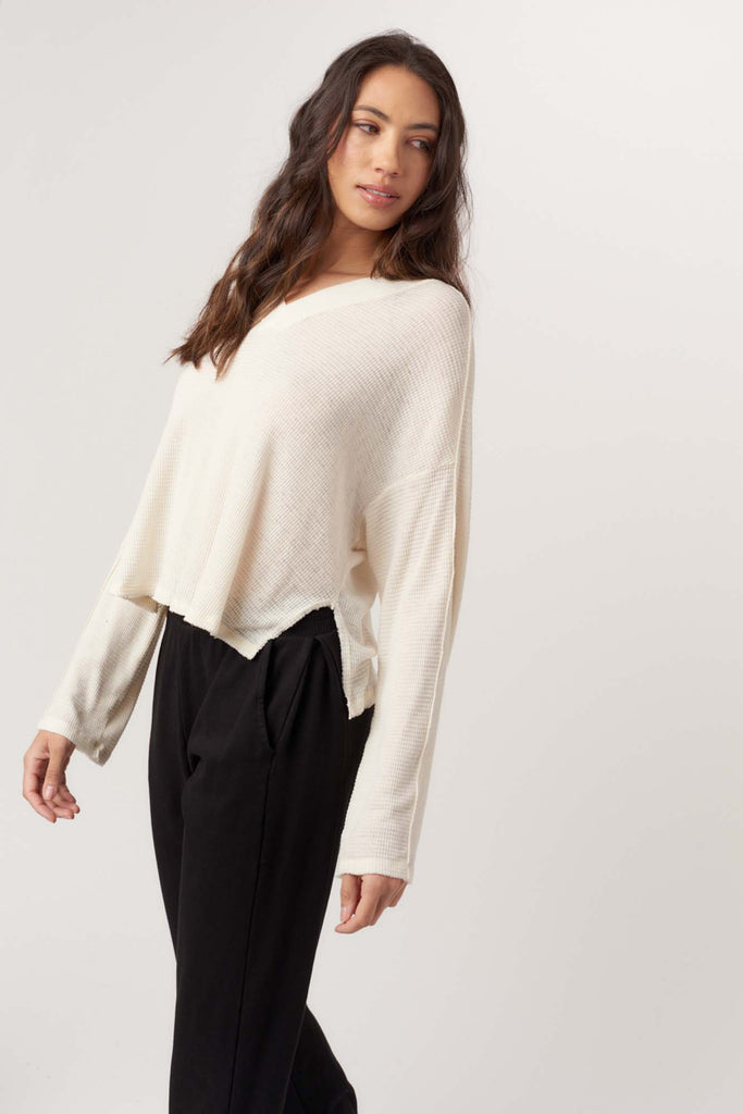 Underground Burnout Thermal V-Neck Long Sleeve - Oat