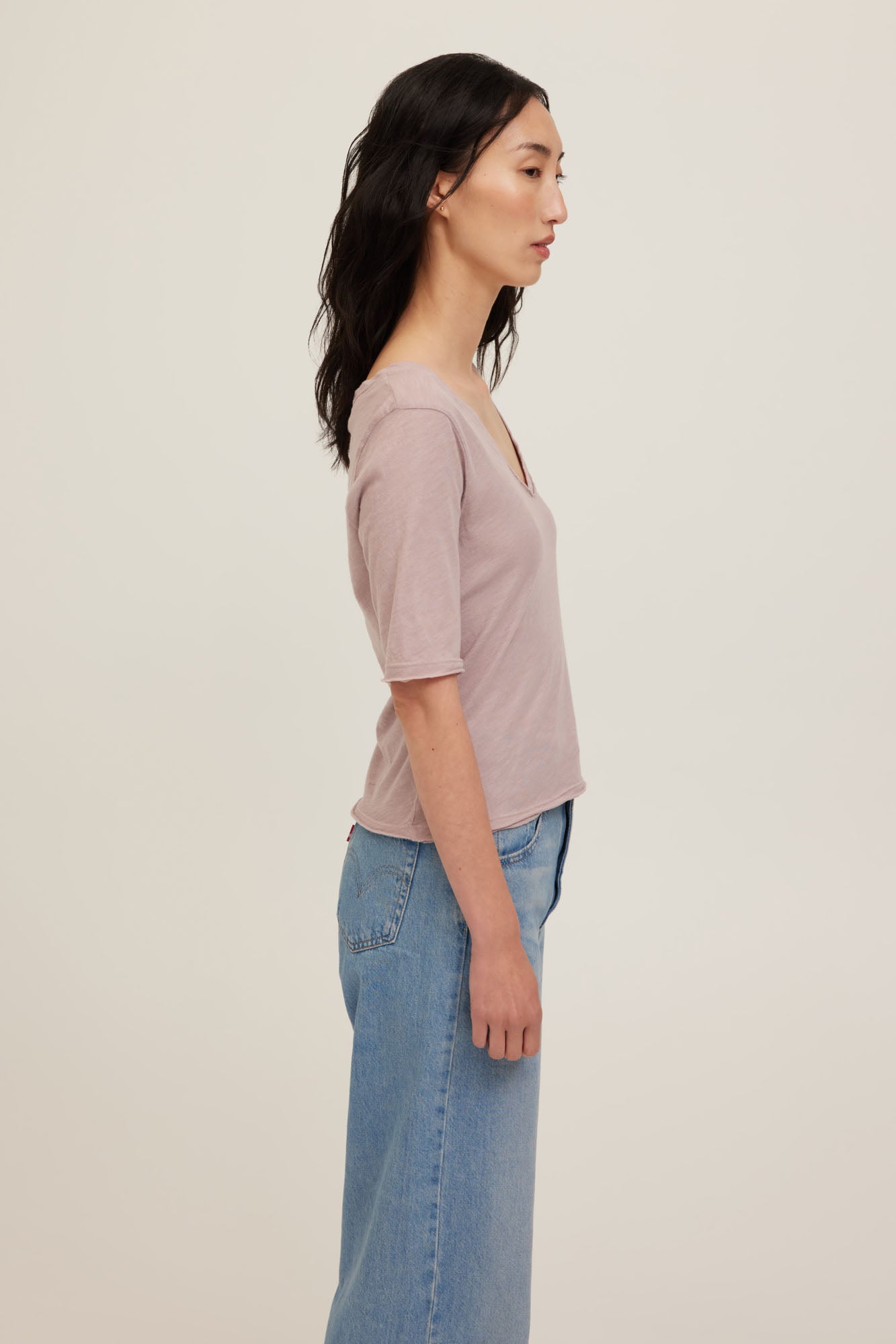 Jude V-Neck Elbow Sleeve Tee - Dusty Lilac