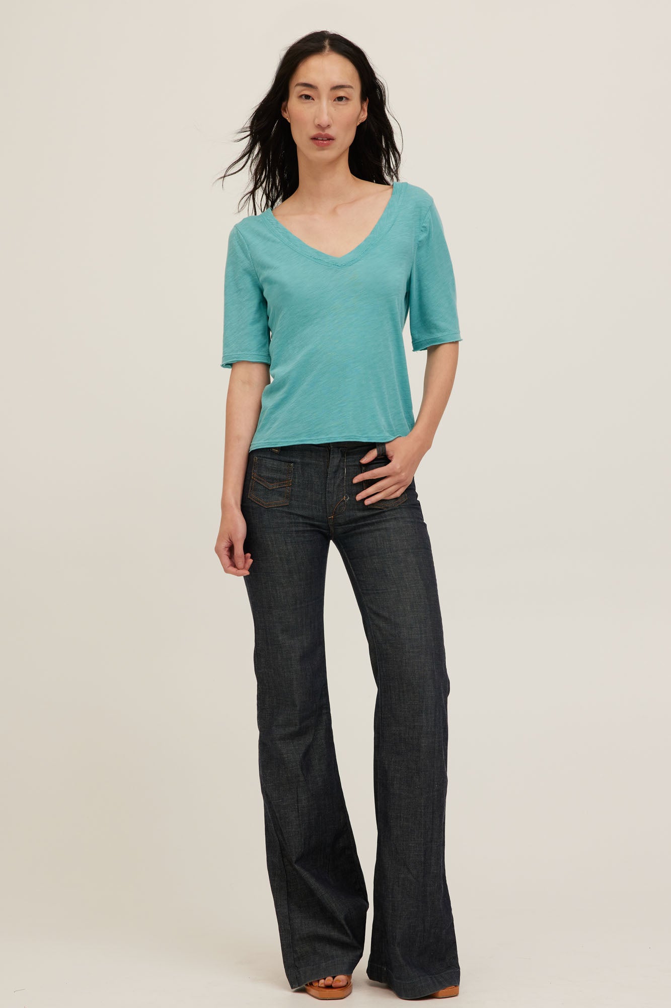 Jude V-Neck Elbow Sleeve Tee - Island Teal