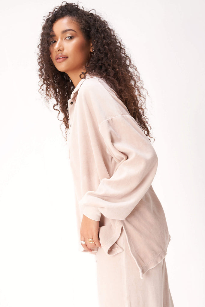 Find Me Here Washed Collared Velour Top - MW Ginger Root